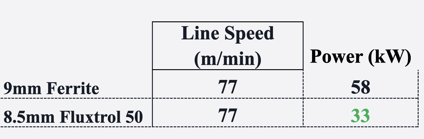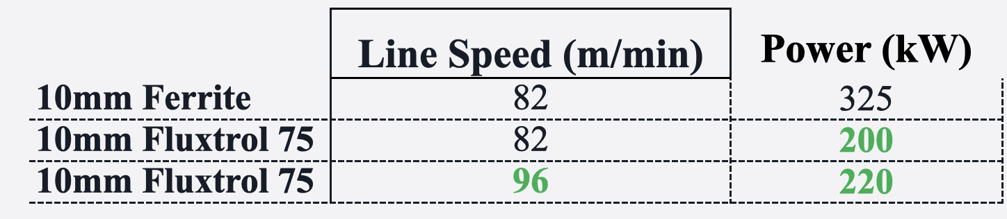 • A trial was run at an existing tube mill replacing the Ferrite impeder with Fluxtrol 75