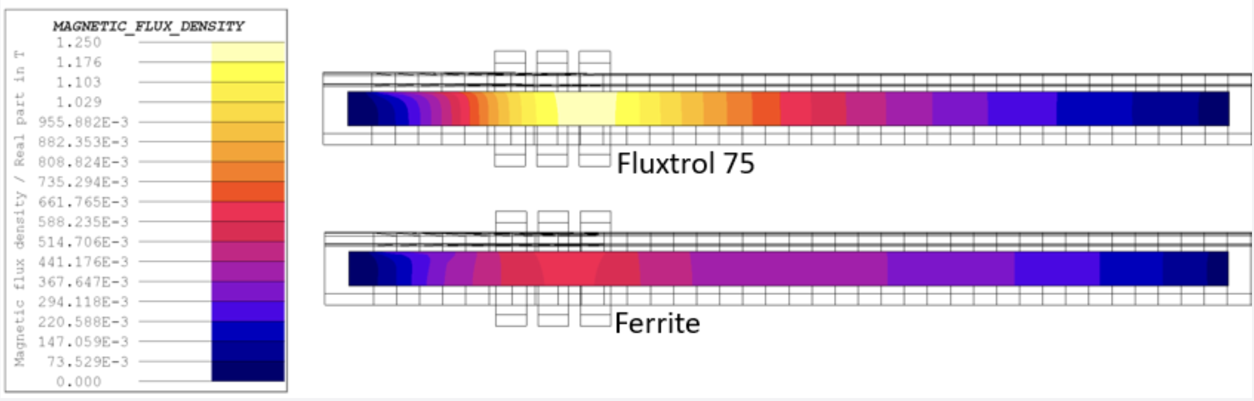 • Fluxtrol 75 is below its saturation flux density of 1.4T