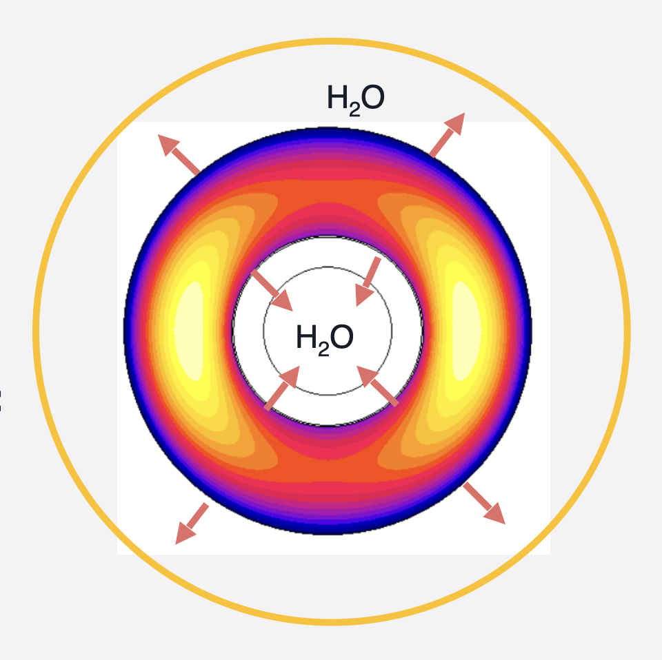 • Local heat removal is dependent upon velocity of water flow, shape of impeder and thermal conductivity of material